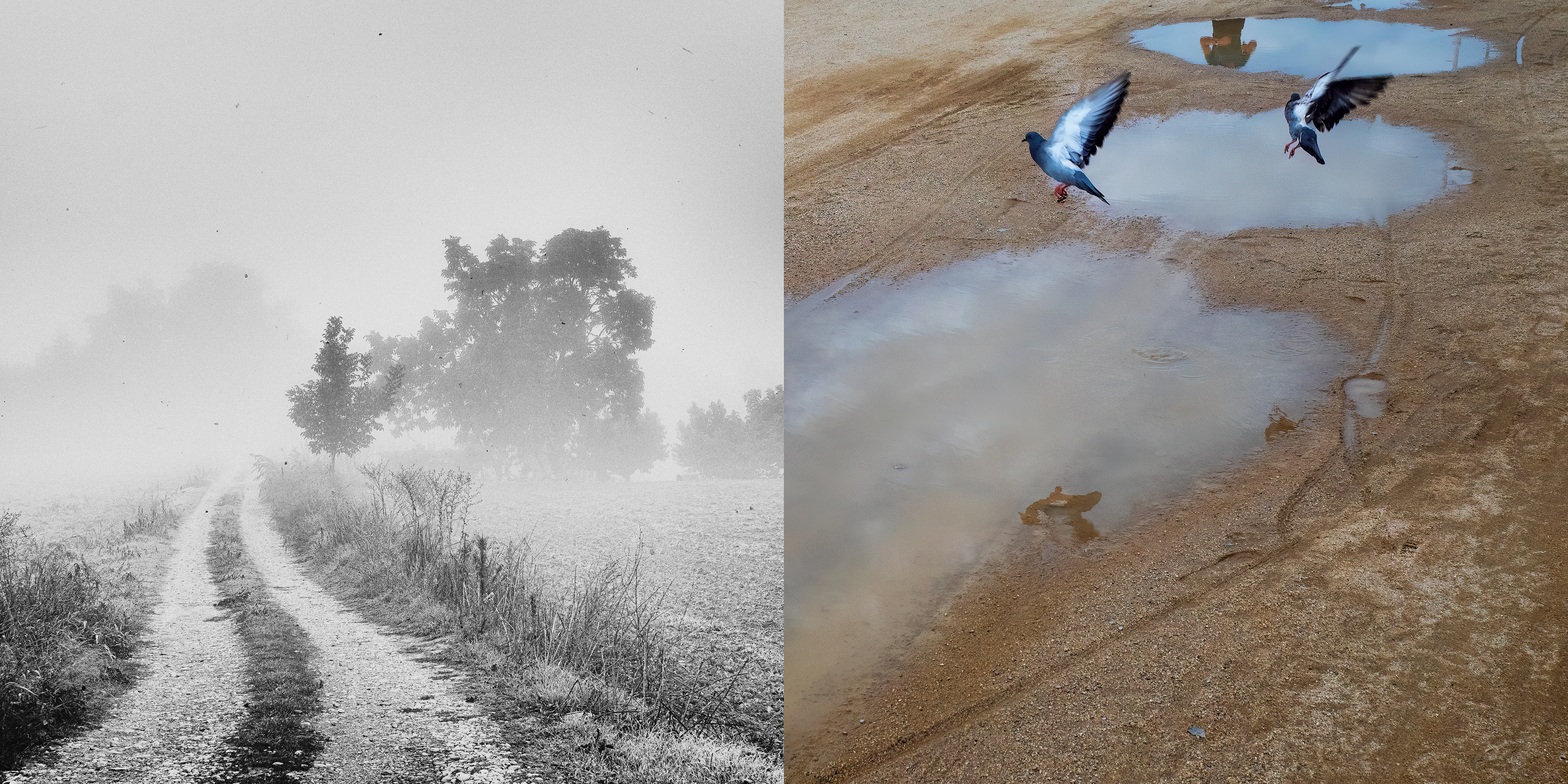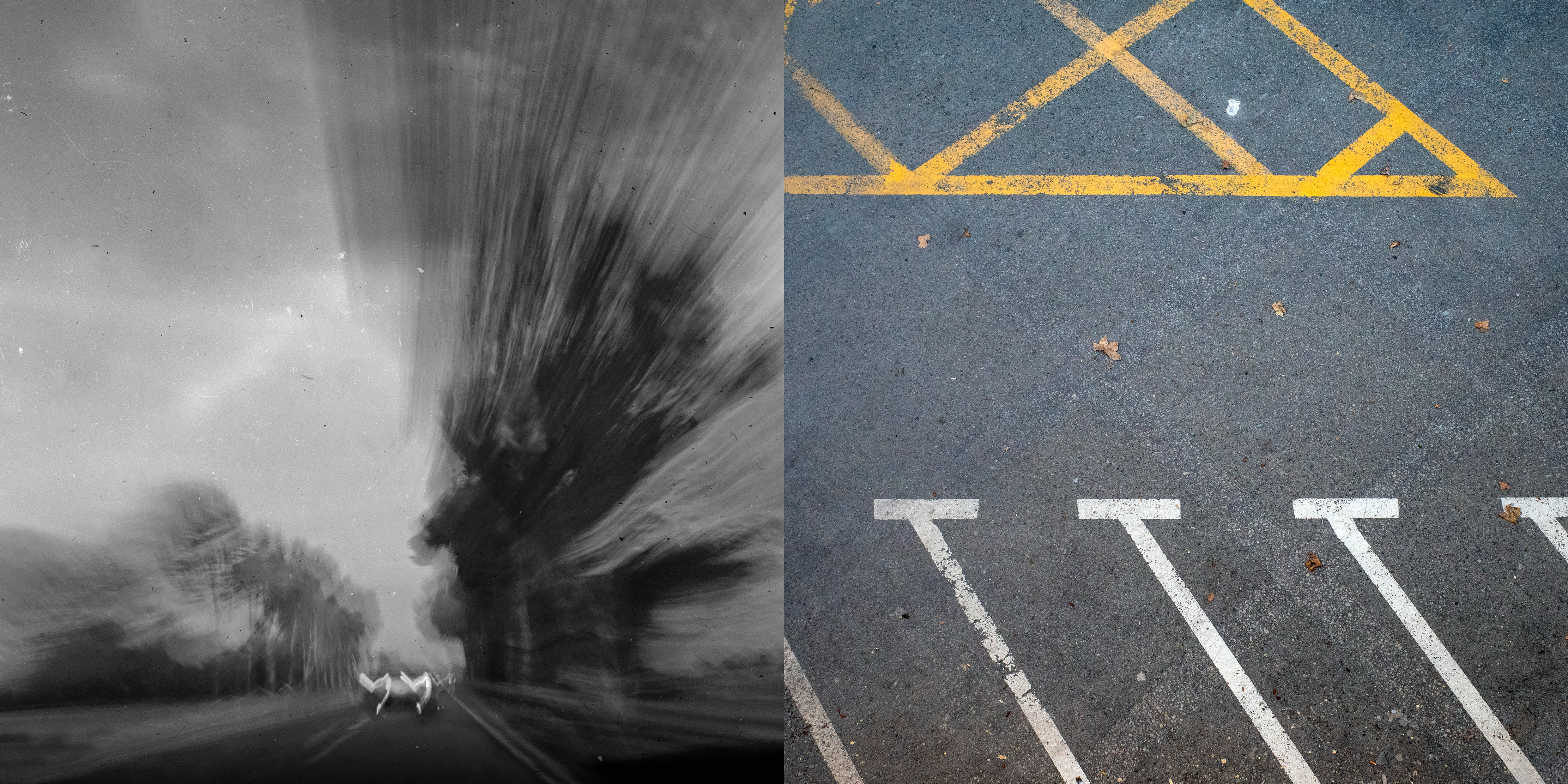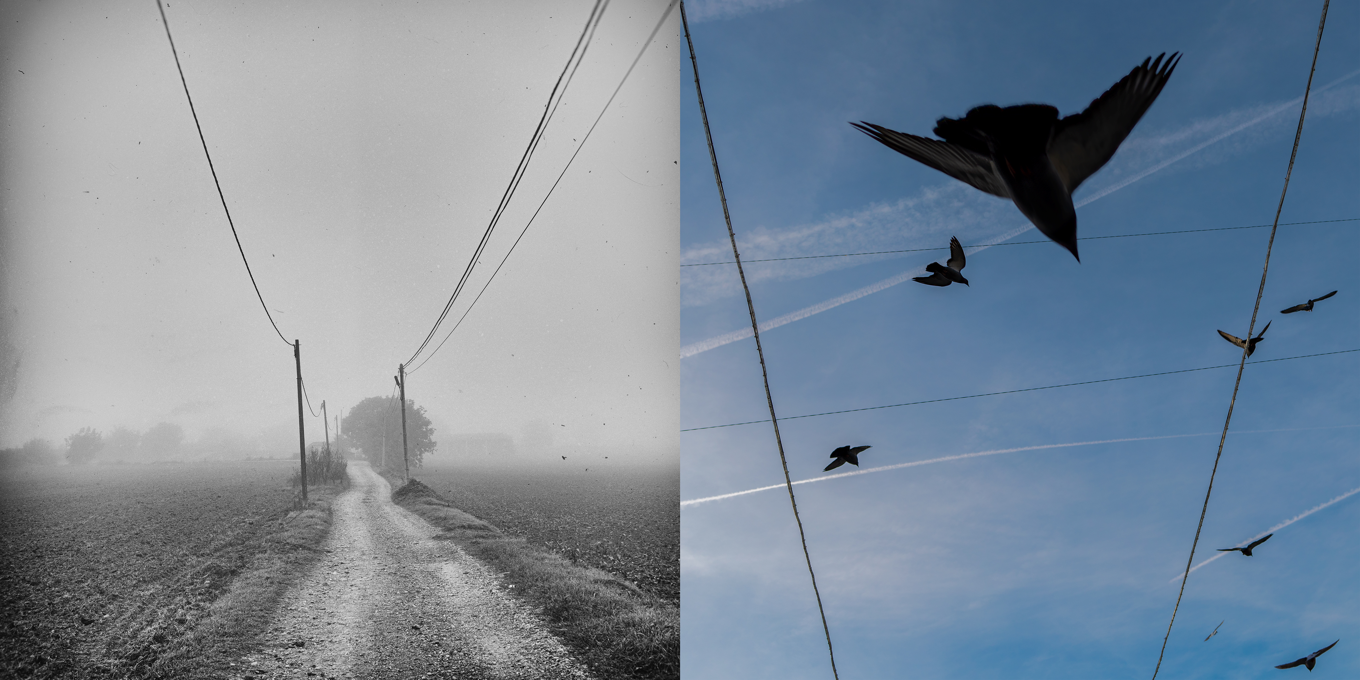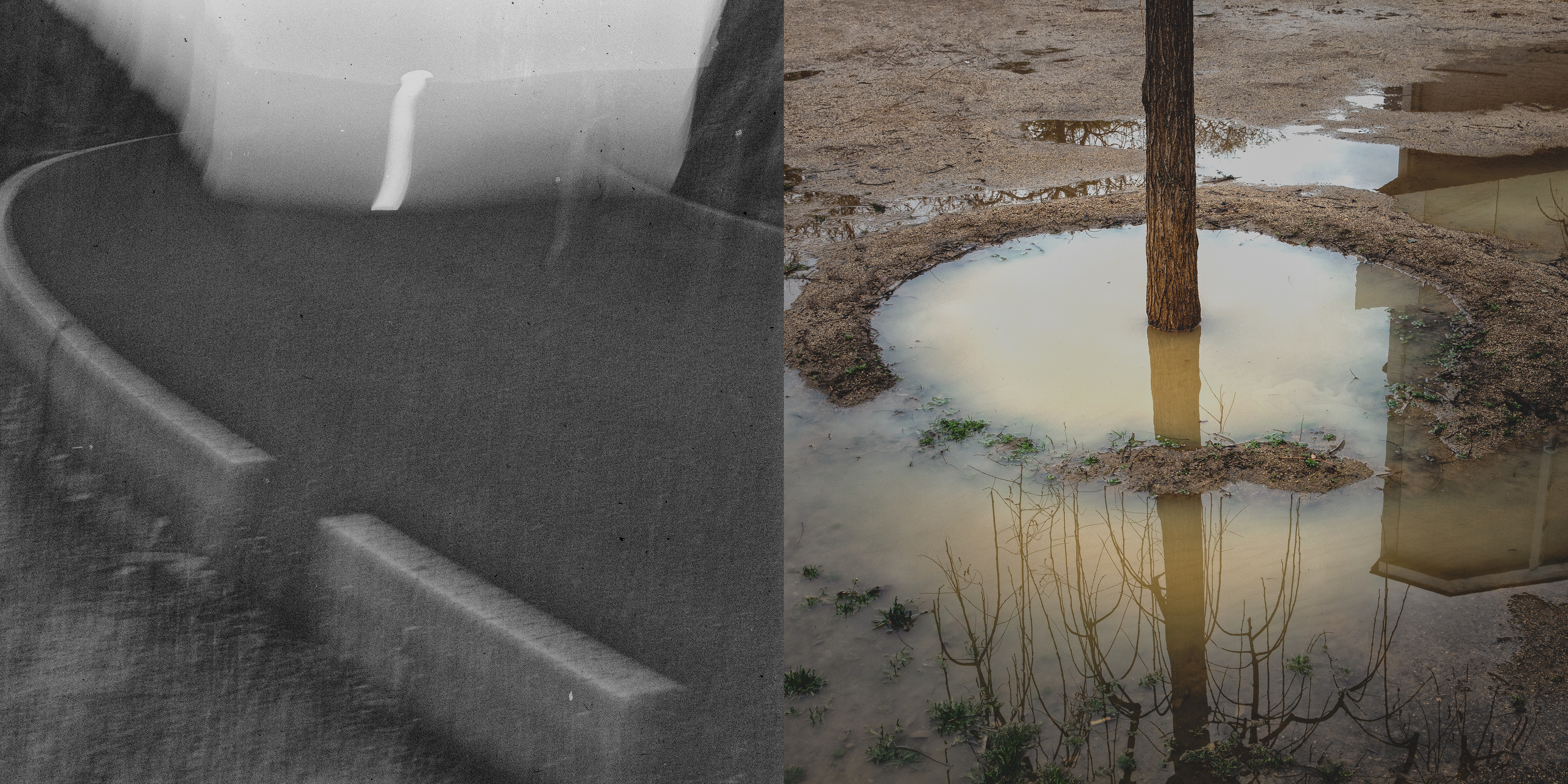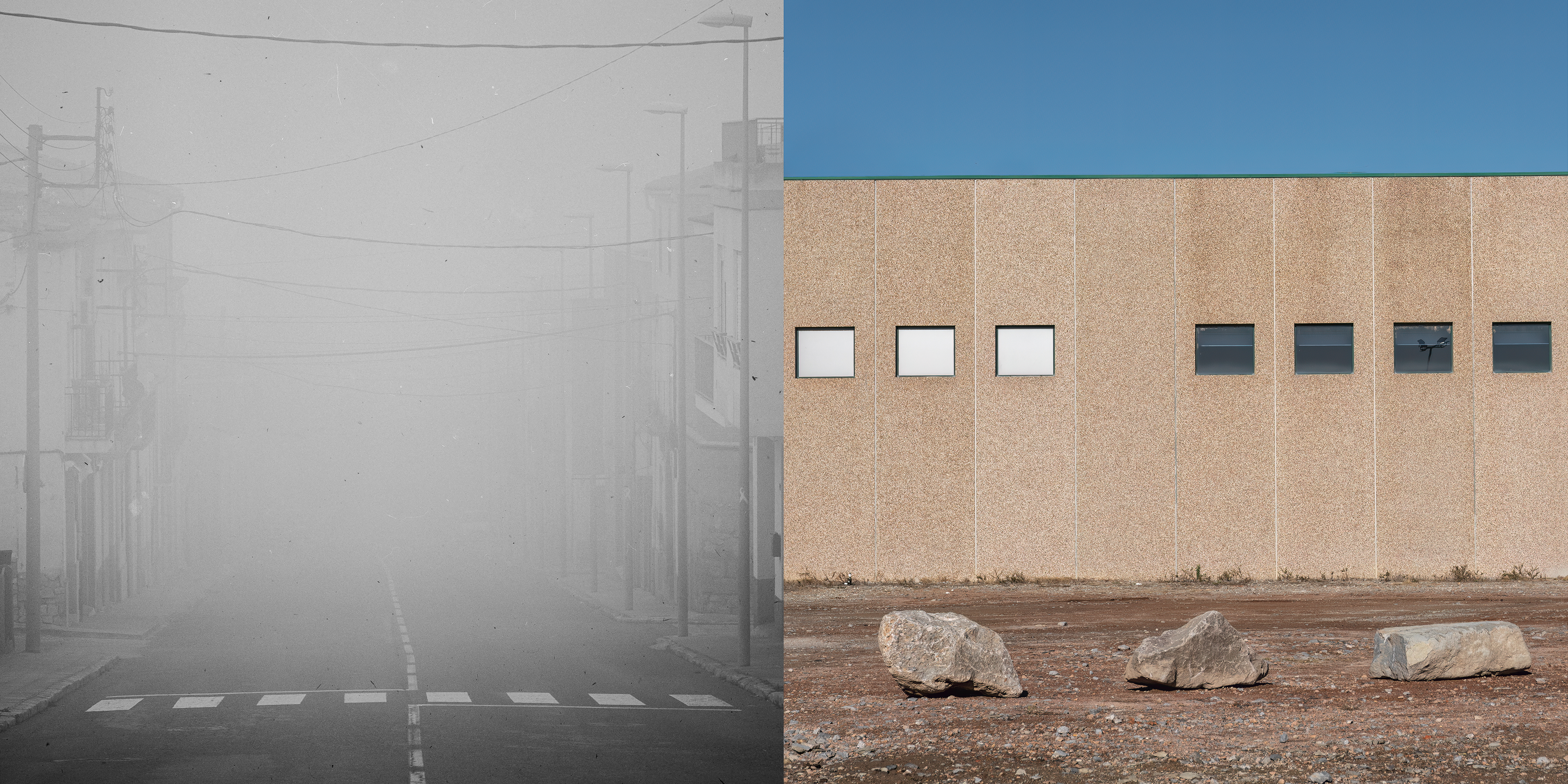 Cada díptico funciona como un nodo: un punto de cruce entre lo observado y lo evocado, entre lo concreto y lo mental. Las fotografías en blanco y negro remiten al trayecto real, donde la mirada se depura. Las imágenes en color aparecen como asociaciones libres: recuerdos imprevistos que surgen sin orden ni lógica. Como una escritura sin argumento, estas imágenes no cuentan una historia. Funcionan más bien como notas: conexiones sueltas de pensamiento sin palabras más cercanas al silencio que a la interpretación.